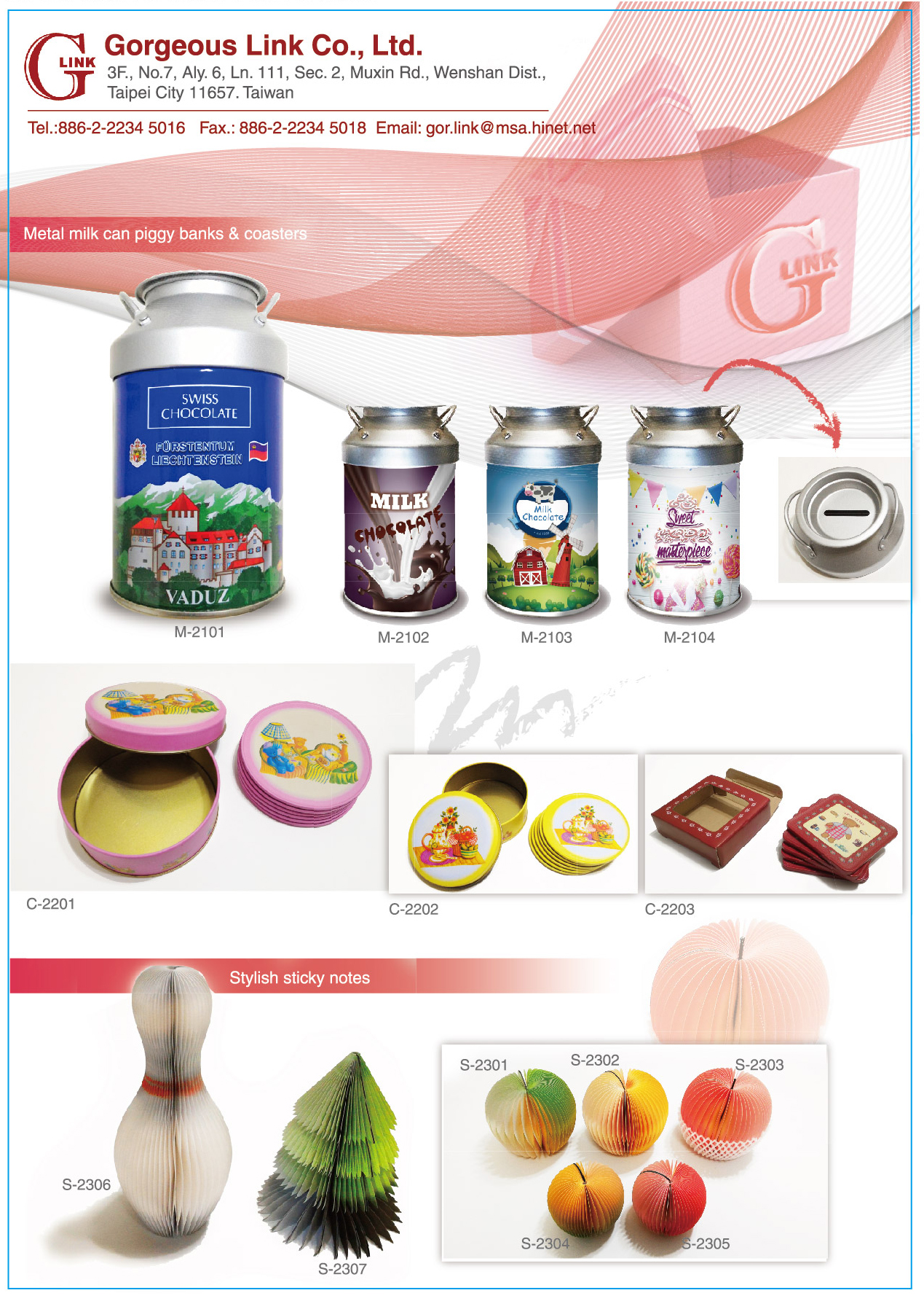 專業的設計使產品注入了靈魂, 不斷的研發與創新是公司向前邁進的原動力. 公司產品主要以外銷市場為導向,客戶遍及全世界歐、美、亞洲包括瑞士、德國、美國等,同時也兼具部分國內內銷以滿足當地經銷商、零售商及各式機關團體的需求.